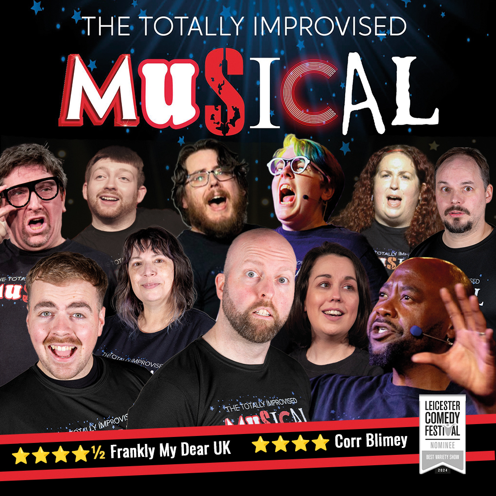 Every night is opening night as these top improvisers compose brand-new comedy musicals from your title suggestions. If you like musicals and you like comedy, then you'll love The Totally Improvised Musical! Nominated Best Variety Show at Leicester Comedy Festival 2024. Sell-out show Buxton Fringe 2023 and 2024!