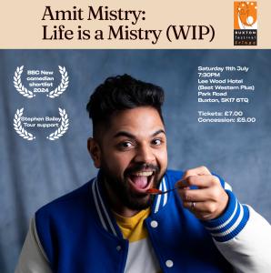 Life is a Mistry follows Manchester-born, Indian raised, BBC shortlisted new comedian Amit Mistry as he navigates the chaos of being a husband, dad and son. Blending sharp storytelling and relatable family tales, Amit brings humour for all, except his in laws! (Stephen Bailey Tour support)