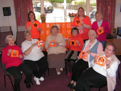 Residents of Hartington Gardens Sheltered Housing join Buxton Festival Fringe chair Stephanie Billen (top left in photograph) to show off stitched plastic panels created during a special workshop to decorate a giant orange 'fringe'. The bright orange fringe, which had its first outing in 2011, is becoming more adorned each year and will be displayed on top of the Pavilion Gardens bandstand at Fringe Sunday, a free showcase of Fringe events, on the afternoon of July 7. The workshops are the brainchild of Fringe community artist Gaye Chorlton and are also taking place in schools in the local area.