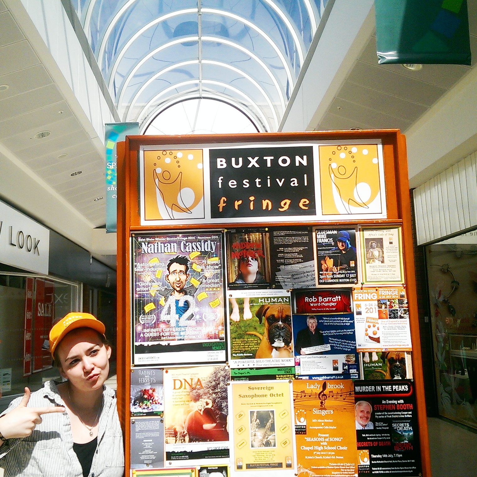 The colour orange has become closely identified with the Fringe in recent years and Helen’s artwork includes actual oranges plus citrus peel. Explains Helen: “As an artist I like to create pieces of art work from materials which are usually destining for waste, and I thought: ‘What could be more perfect than the material I predominately use, citrus peel, to create the art for the Buxton Festival Fringe programme cover?’ I reproduced the Fringe logo using my style, manipulating the citrus peel to create this playful juggling figure.“