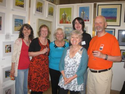 Picture shows from left to right: Fringe Vice Chair, Maria Carnegie, Fringe Secretary Pam Mason, Green Man volunteers Wendy Sheville and Charles Denton (behind), The Green Man's Events Manager, Caroline Small, and Fringe Chair Keith Savage against a backdrop of pictures at The Green Man Gallery.
