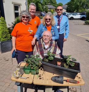 Buxton’s Haddon Hall Care Home residents have been helping Buxton Fringe in its creation of orange floral “hot spots” for the town. Pictured here are resident Rod Males (foreground) with Fringe Community Links team, Carole Garner, Rob Harrison, Linda Rolland (behind Rod) and Haddon Hall Client Service Manager Richard Vaughan. Buxton Fringe takes place from 5-23 July. See www.buxtonfringe.org.uk for full details of events.
